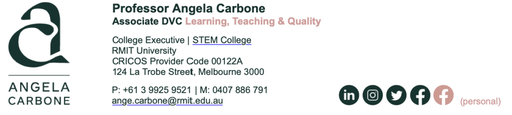 The VTAS PEN and AAUTN would like to congratulate Professor Angela Carbone on her new appointment as Associate Deputy Vice-Chancellor Learning, Teaching and Quality in the STEM College at RMIT University, commencing on 25 January 2021.